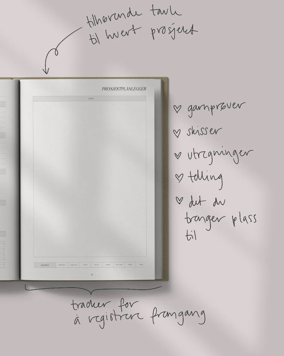 Fyll den med tekst, bilder, garnprøver og skisser – og gjør den til din personlige inspirasjonsbank!